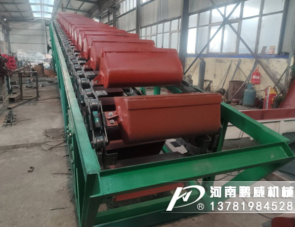 鵬威機械生產的鏈板輸送機是一種以標準鏈板為承載面,由馬達減速機為動力傳動的傳送裝置。鏈板式輸送機,由動力裝置(電機)、傳動軸、滾筒、張緊裝置、鏈輪、鏈條、軸承、潤滑劑、鏈板等等構成。其中帶動物料的輸送的主要的兩個部分為:鏈條,利用它的循環往復運動提供牽引動力;金屬板,作為輸送過程中的承載體。可以通過多列鏈板并行,使鏈板輸送機做的很寬并形成差速,利用多列鏈板的速度差使多列輸送在無擠壓的情況下變為單列輸送,從而滿足飲料貼標、灌裝、清洗等設備的單列輸送的要求,我們可以將兩條鏈板輸送機的頭尾部做成重疊式的混合鏈使得瓶(罐)體處于動態過度狀態,使輸送線上不滯留物料,可以滿足空瓶以及實瓶壓力和無壓力輸送。