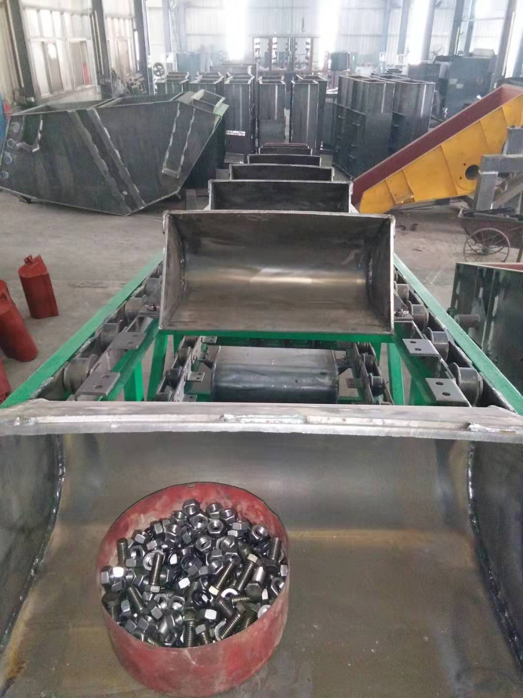 鏈斗輸送機(jī)的料斗寬度分別有350mm、450mm、630mm、800mm、 1000mm五個(gè)規(guī)格,根據(jù)不同的運(yùn)行場(chǎng)合及環(huán)境要求,鏈斗輸送機(jī)分敞開(kāi)型、半封閉型和全封閉型三種形式。用戶可根據(jù)附表中的參數(shù)選擇機(jī)型,并提出具體的布置形式及尺寸、輸送產(chǎn)量、物料參數(shù)和其他要求。該機(jī)適用于各種粉狀、塊狀散裝物料的水平或傾角≤60°的輸送,特別適宜一些溫度高、容量大、塊頭大、具有鋒利棱角和磨琢性強(qiáng)的固體物料的輸送。鏈斗式輸送機(jī)(鏈斗輸送機(jī))產(chǎn)品廣泛應(yīng)用于電站、礦山、煤炭等行業(yè)的,進(jìn)行各種松散物料的輸送;如:鍋爐灰渣、水泥熟料、礦渣、焦炭、碎石等,特別是一些溫度高、容重大、塊度大、具有鋒利銳角和磨琢性強(qiáng)的物料。